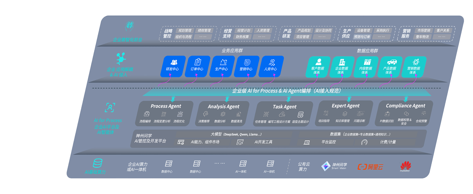 端到端的一站式AI工作空间深度融合了从企业战略规划到日常经营的全流程业务板块,,定向解决车企内部领域多、、、部门多、、、链条长、、、场景碎片化等难题,,支持车企快速构建以AI为核心的生产力写作体系,,,实现任务执行与AI能力的无缝集成与交互